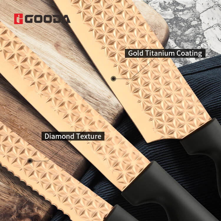 5. GOODA All-new Gold Titanium And Diamond 3-Piece Knife Set