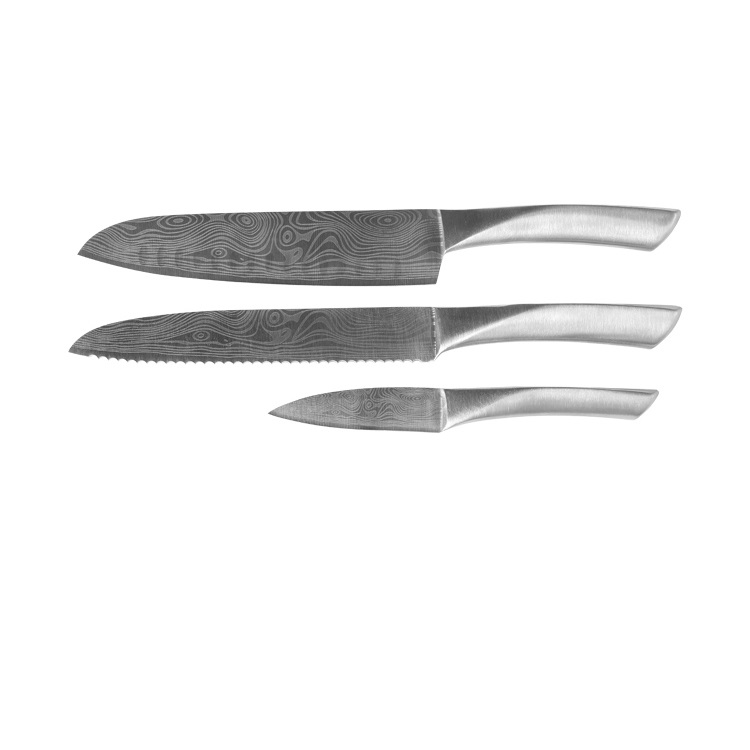 3 Pcs Laser Damascus Blade Knife Set
