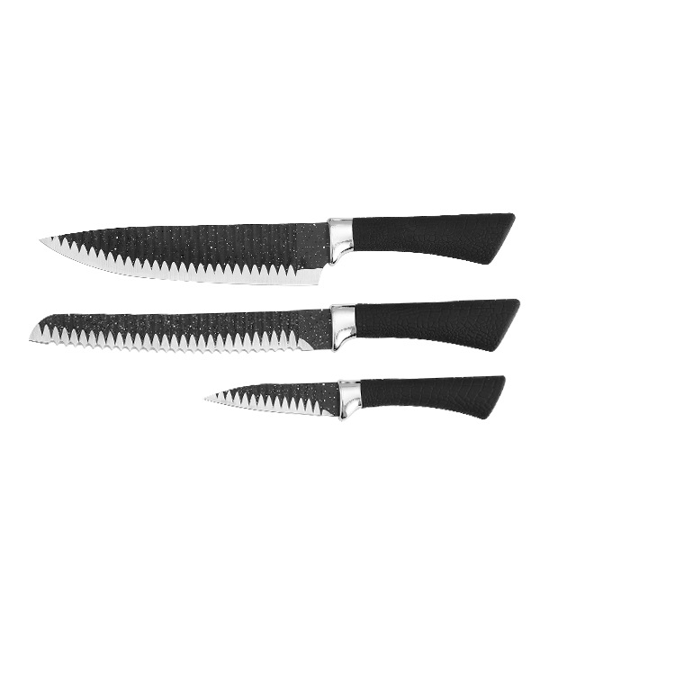 3 Pcs Black Hollow Handle Knife Set