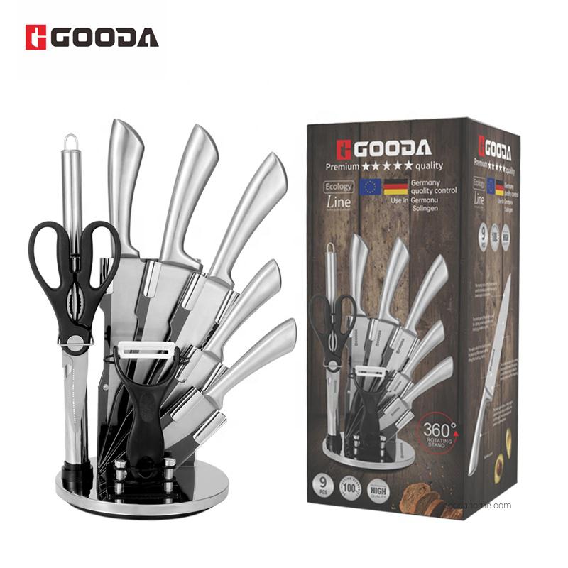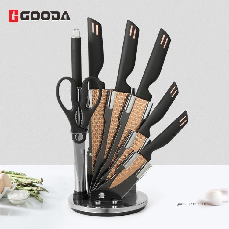 9 pcs High carbon Steel ABS Handle Restaurant Kitchen Knife Set with Sharpener Scissors Holder